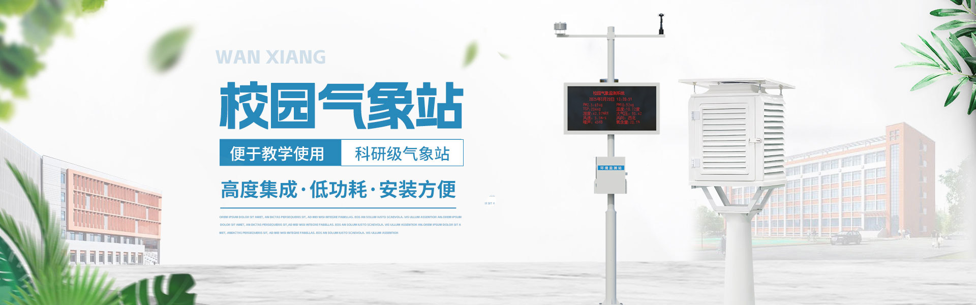 山東萬(wàn)象環(huán)境科技有限公司官網(wǎng)主要產(chǎn)品有防爆氣象站,校園氣象站,農(nóng)業(yè)氣象站,負(fù)氧離子監(jiān)測(cè)站,超聲波氣象站,歡迎咨詢(xún)13276362033!